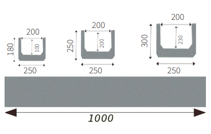1000mm 250mm 180 / 250 / 300mm